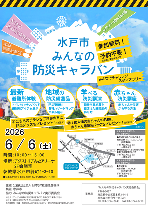 水戸市全面協力のもと、6月6日(土)にアダストリアみとアリーナで防災イベントを開催。
